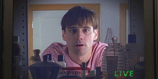 Truman Show est un projet ambitieux bien que typiquement hollywoodien. Truman, le personnage principal, joué par Jim Carrey, n’a pas une existence ordinaire, il est l’objet principal d’une émission depuis son enfance. Bien sûr, lui seul ignore que son monde est factice. Mais il va découvrir peu à peu que quelque chose ne tourne pas rond dans ce monde en carton-pâte. Le film reprend le fameux questionnement de Descartes sur la réalité du monde. Le second thème majeur du film est la critique de la société du spectacle, dans la veine de Guy Debord.