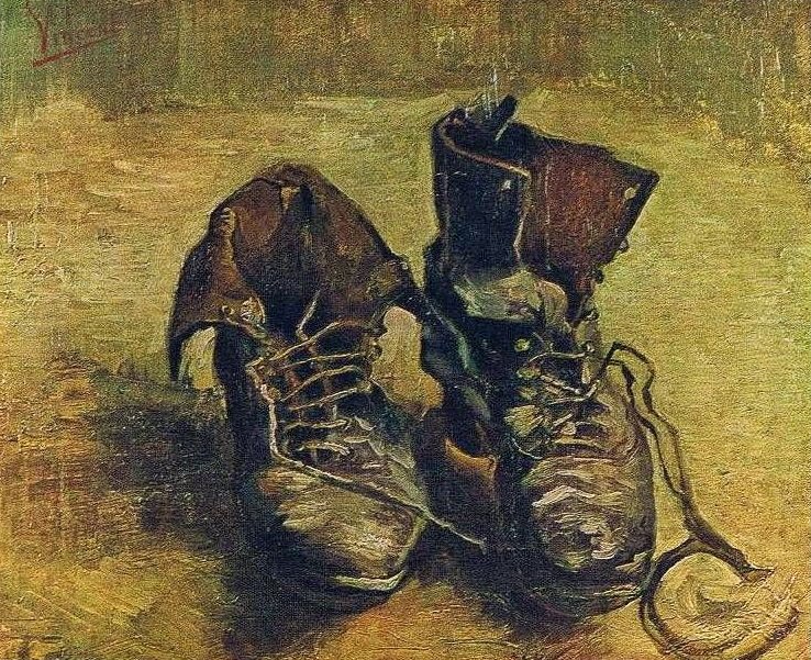 Toute œuvre d’art est poème parce qu’elle laisse advenir l’être de la chose, la choséité de la chose telle qu’on peut l’admettre dans les poèmes d’Hölderlin ou dans la toile des « Souliers » de Van Gogh, la choséité de la chose, son essence, sa consistance au travers de sa fragilité, sa solidité au travers de sa liquéfaction, le retrait au travers du don. Paradoxe de l’œuvre d’art qui donne à voir ce qui échappe au regard, qui dit ce qui se clôture dans le silence, qui présente la préhension de ce qui résiste à toute donation : l’Etre, le Rien.
